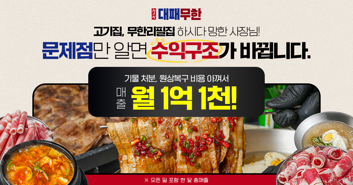폐업도 힘들다면, 청고장대패무한 창업이 정답! 간판만 변경하고 "0원 창업!“ 창업상담 시 상당한 추가 혜택까지! 간판변경으로 0원 창업가능 사장님 마음대로 자율시공으로 추가 비용 절감 기