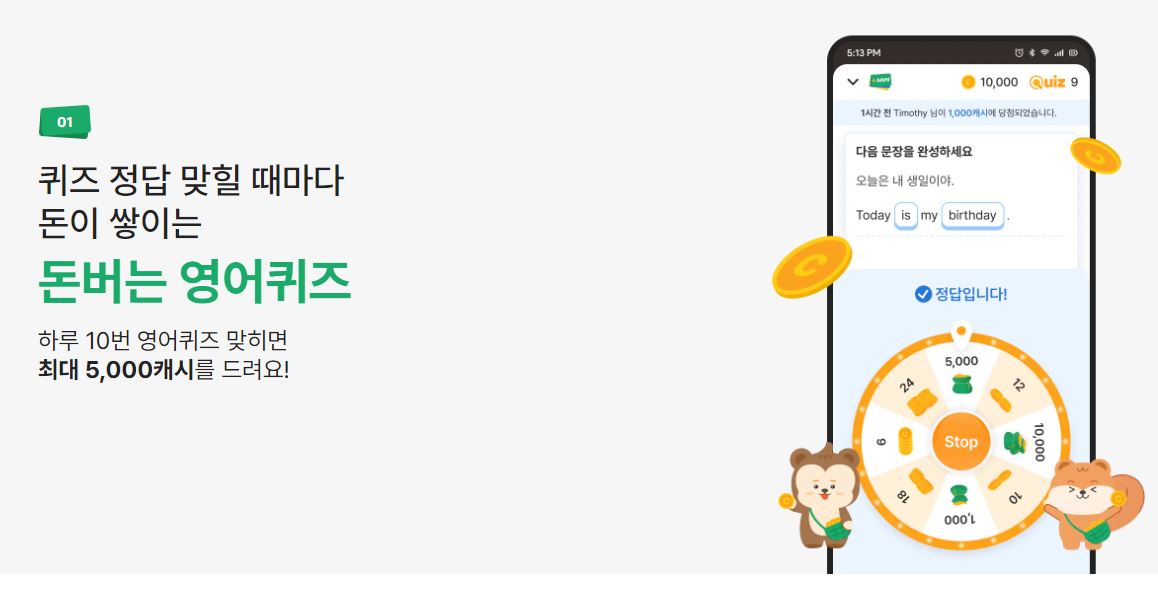 영어공부하면서 퀴즈도 풀고 돈버는 앱!!