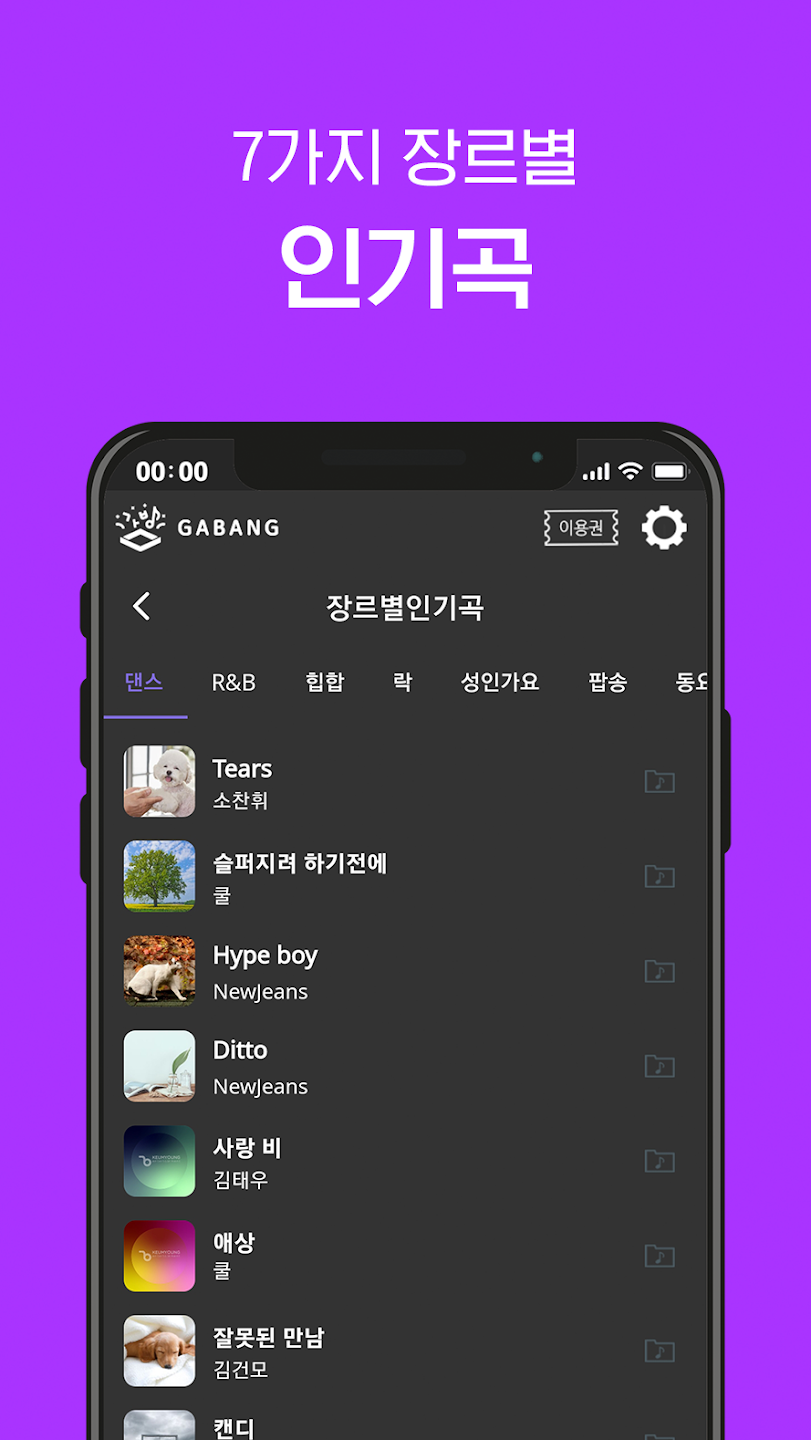 1).최신노래/인기가수/트로트/OST/아이들전용/힙합등 무료로 노래를 부를 수 있습니다.