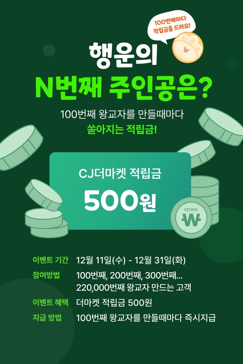 - N번째 왕교자를 만들면 적립금 3,000원 지급