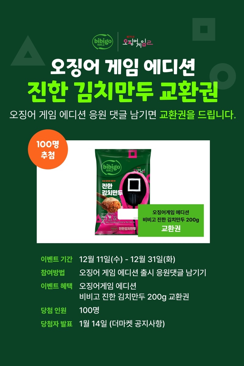 - 응원 댓글 달면 100명 추첨 비비고 진한 김치만두 증정