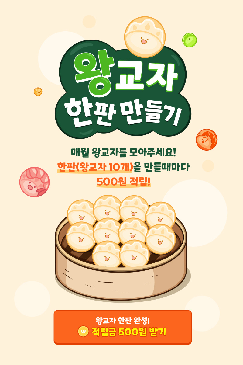 - 왕교자 10개 만들면 적립금 500원 추가지급